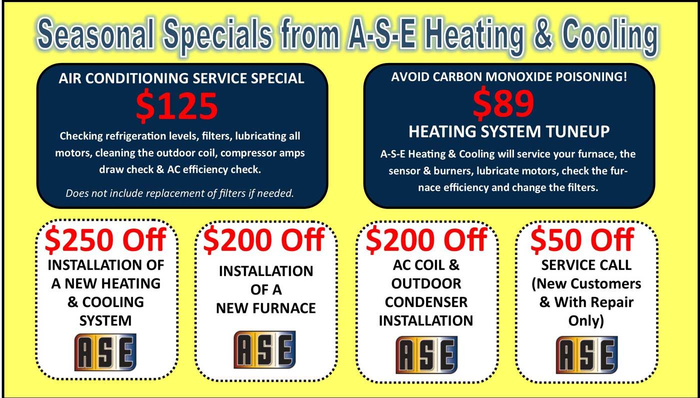Is your AC system just not cutting it anymore? Does your faulty furnace leave you shivering in the winter? In either case, you'll need a professional on hand to provide the first-rate HVAC services you need. That's where ASE Heating & Cooling LLC comes in.